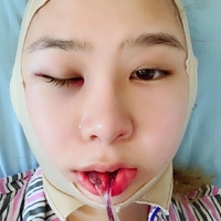 脸还是肿着的,但是能看出来脸小了很多,今天的肿胀也比前两天消了很多,感觉在慢慢消肿了。只要一天比一天恢复得好就行,反正急也急不来。戴头套有点勒有点压迫感,但没办法还要戴很多天,期待快点恢复。 在医院躺了5天了,好想出去走动一下,好在也快出院了。这两天躺着没事看了很多日志,本来以为我已经很肿了,没想到还有比我更肿的,做截骨的妹子们都是好样的,大家一起加油早点恢复。